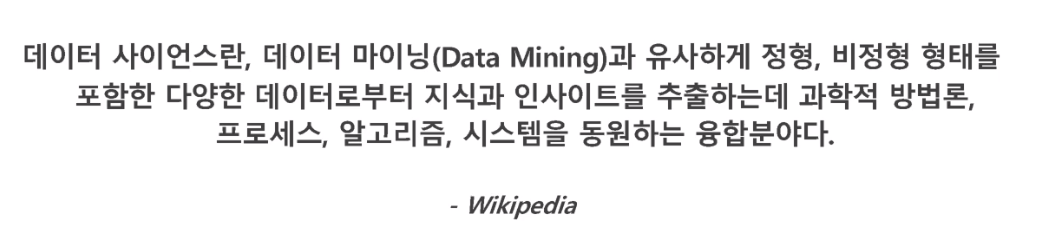 이처럼 데이터사이언스에 대한 정의가 다양하지만,