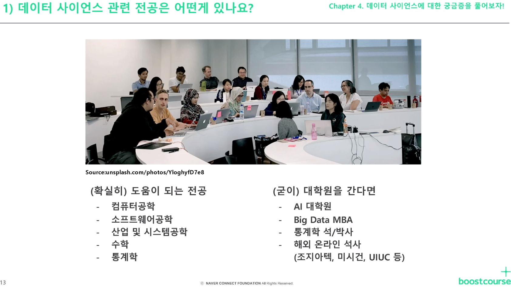 A) 다음 표에서 데이터 사이언스의 직무를 확인할 수 있다.