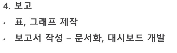 보고 : 분석 결과물을 이해할 수 있도록 보고.