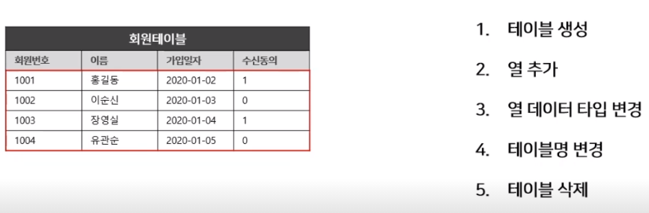 ALTER TABLE 회원테이블 RENAME 회원정보;