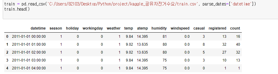 캐글에서 받은 훈련데이터(train.csv)를