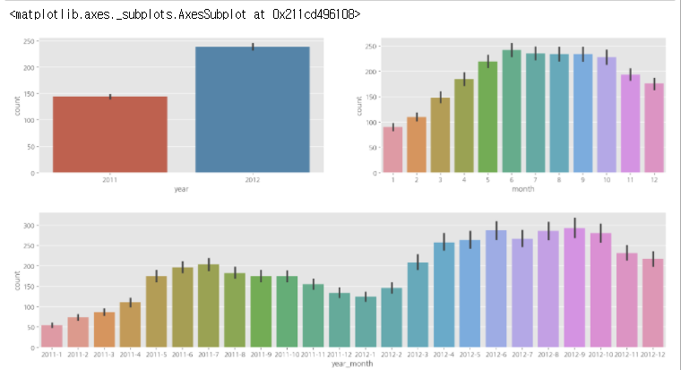 - 2011년보다 2012년의 대여량이 더 많은걸 알 수 있다.