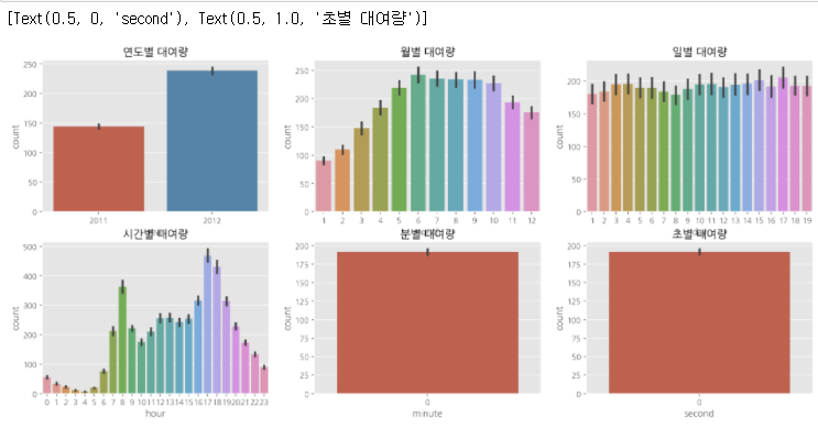 # ax6.set(xlabel= 'second', title='초별 대여량')