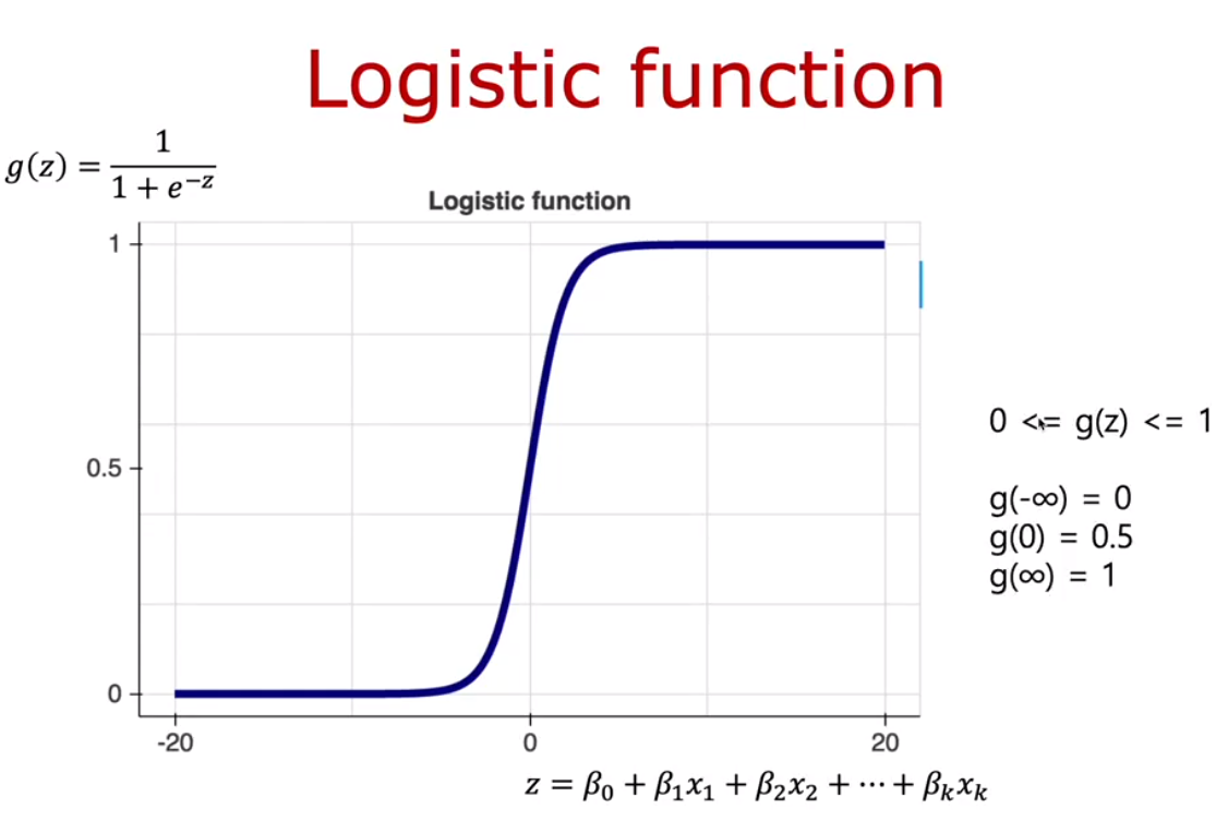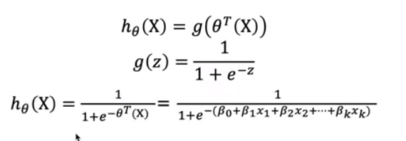 그리고 이렇게 표현하여 Logistic Regression의 시그모이드 함수( g(z) )에 대입하게 된다.