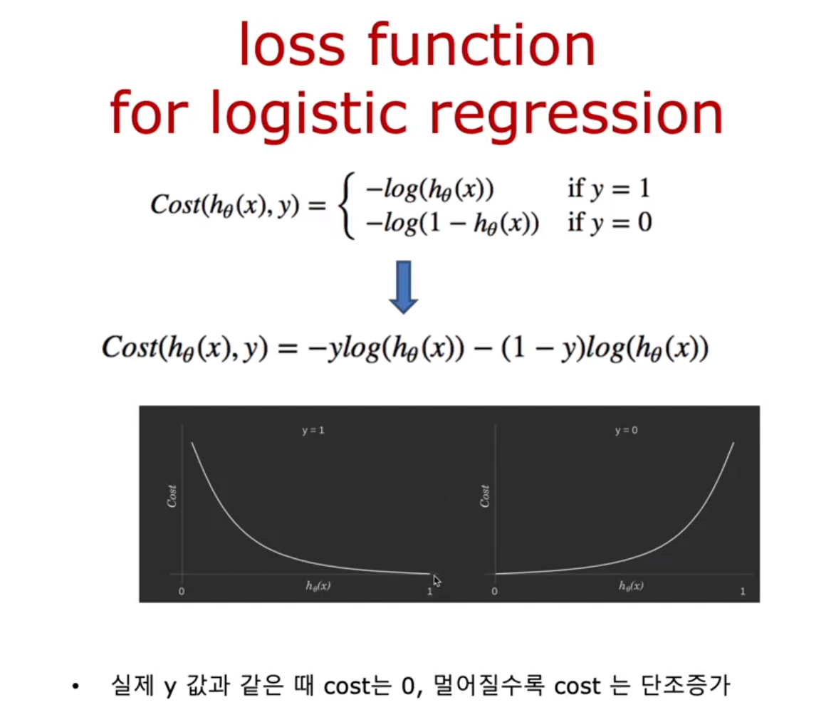 그러면 Logistic Regression에서는 어떻게 비용함수를 정의해서 최소화 시켜야하는가?