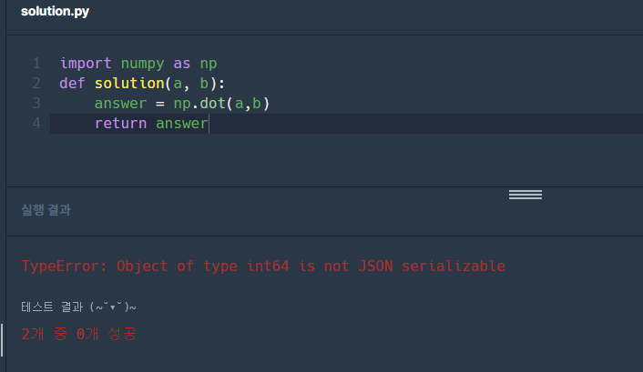 처음 내적은 numpy의 dot 기능을 통해 내적을 하려고 했지만,