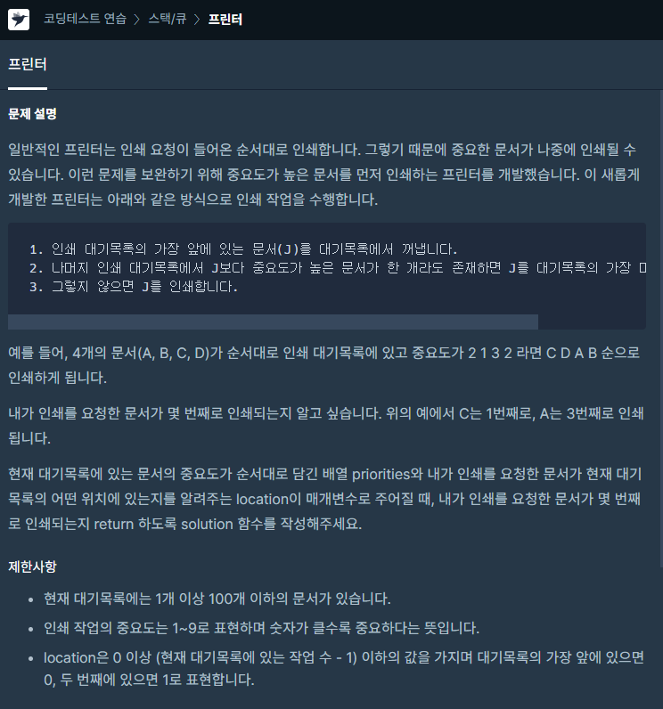 일반적인 프린터는 인쇄 요청이 들어온 순서대로 인쇄합니다. 그렇기 때문에 중요한 문서가 나중에 인쇄될 수 있습니다. 이런 문제를 보완하기 위해 중요도가 높은 문서를 먼저 인쇄하는 프린