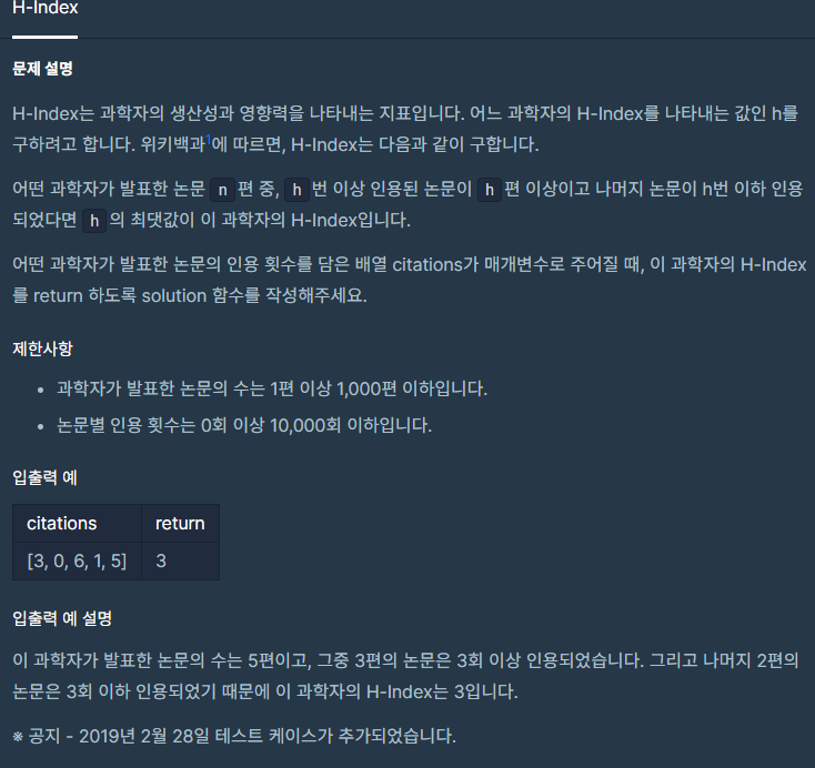 코딩테스트 연습 - H-Index